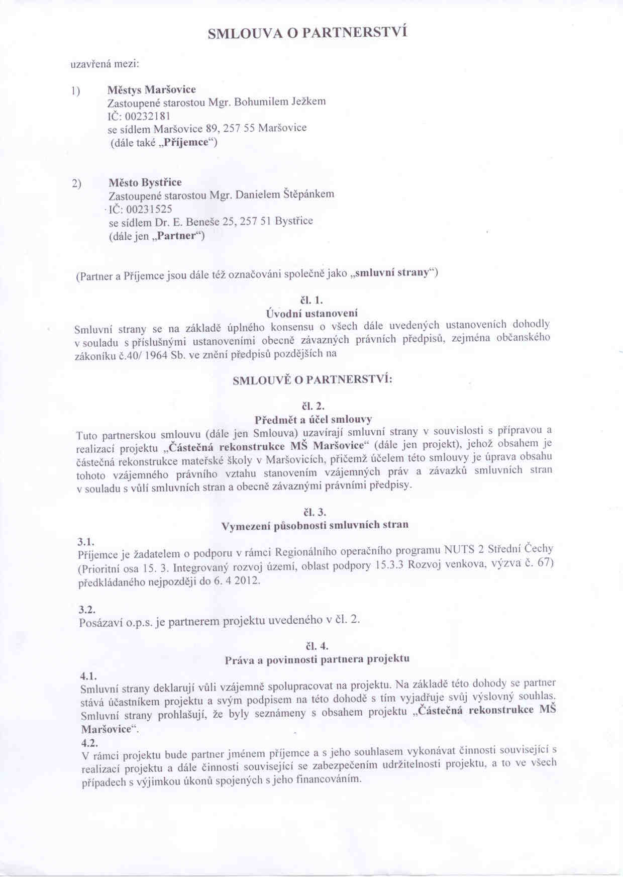 Projekt Částečná rekonstrukce MŠ Maršovice