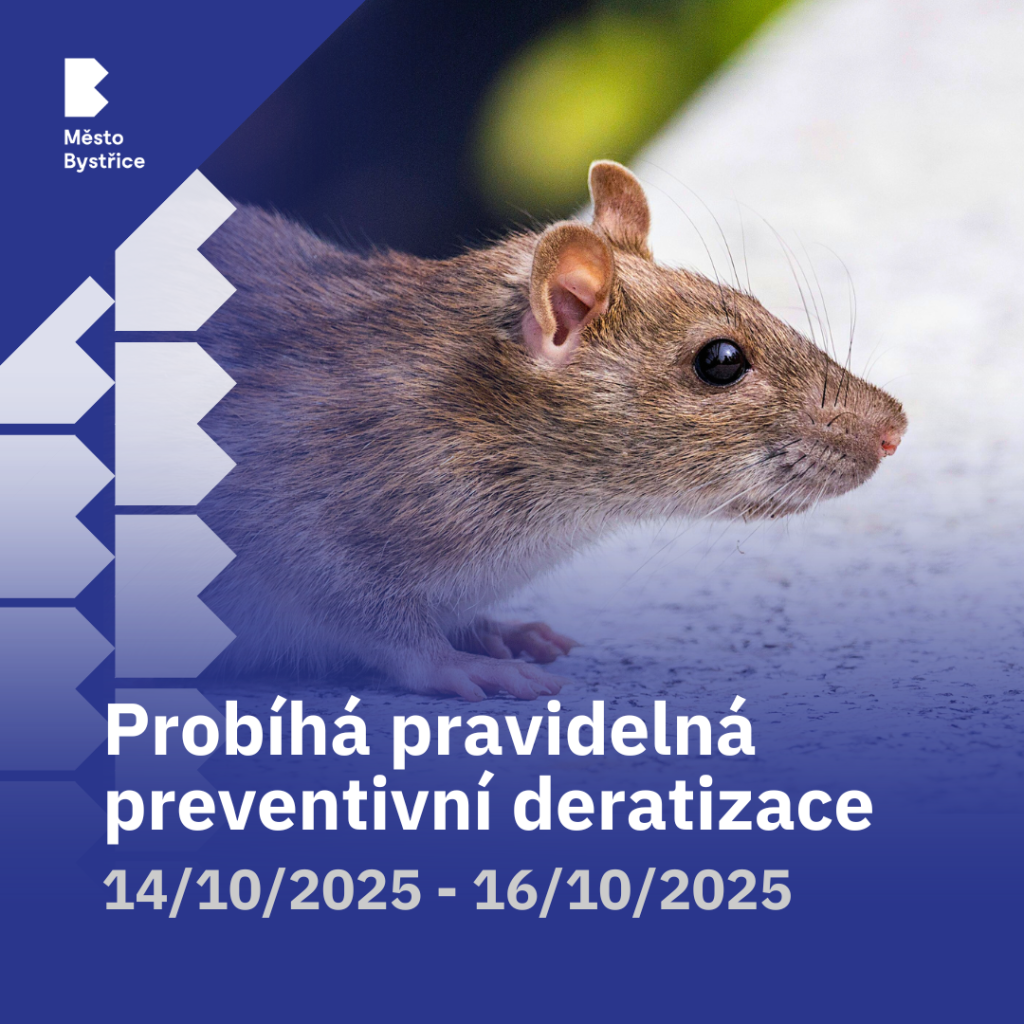 Upozorňujeme občany, že v průběhu tohoto týdne proběhne deratizace hlodavců kladením nástrah do kanalizace. Pokud byste našli v okolí kanalizace uhynulého hlodavce, nedotýkejte se ho a zavolejte prosím Městskou policii 602 206 156.