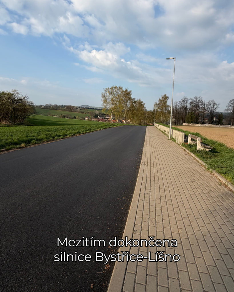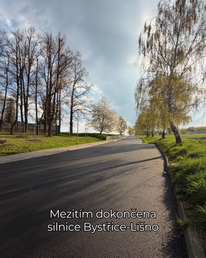 Silnice Bystřice–Líšno přes hřbitov je už hotová a v tomto úseku se opět jezdí bez omezení.
