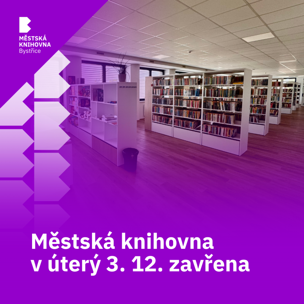Městská knihovna Bystřice bude v úterý 3. prosince 2024 z provozních důvodů uzavřena. Děkujeme za pochopení.