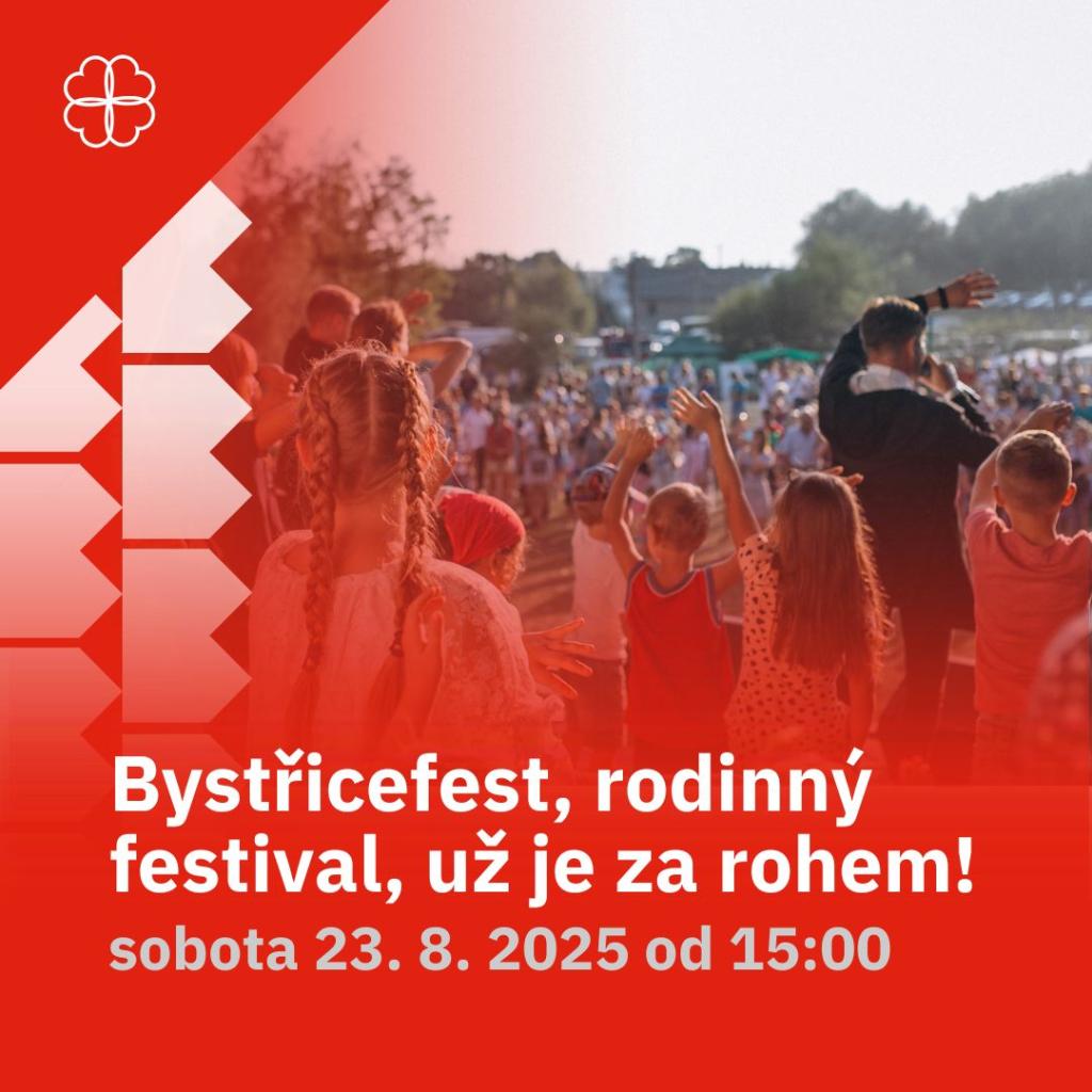 Už se nemůžeme dočkat! V sobotu 23. srpna 2025 od 15:00 se opět sejdeme na Stadionu v Bystřici, kde proběhne 5. ročník rodinného festivalu Bystřicefest.