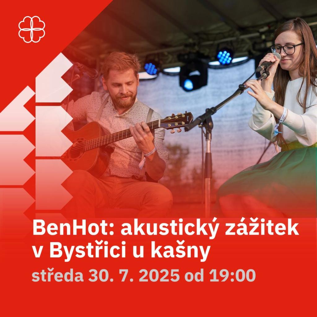 Zveme vás na další z letních koncertů pod širým nebem na Ješutově náměstí. Tentokrát s kapelou BenHot, která s citem aranžuje hity od Red Hot Chili Peppers i Bena Howarda. Těšte se na jedinečné spojení známých skladeb v osobitém podání.