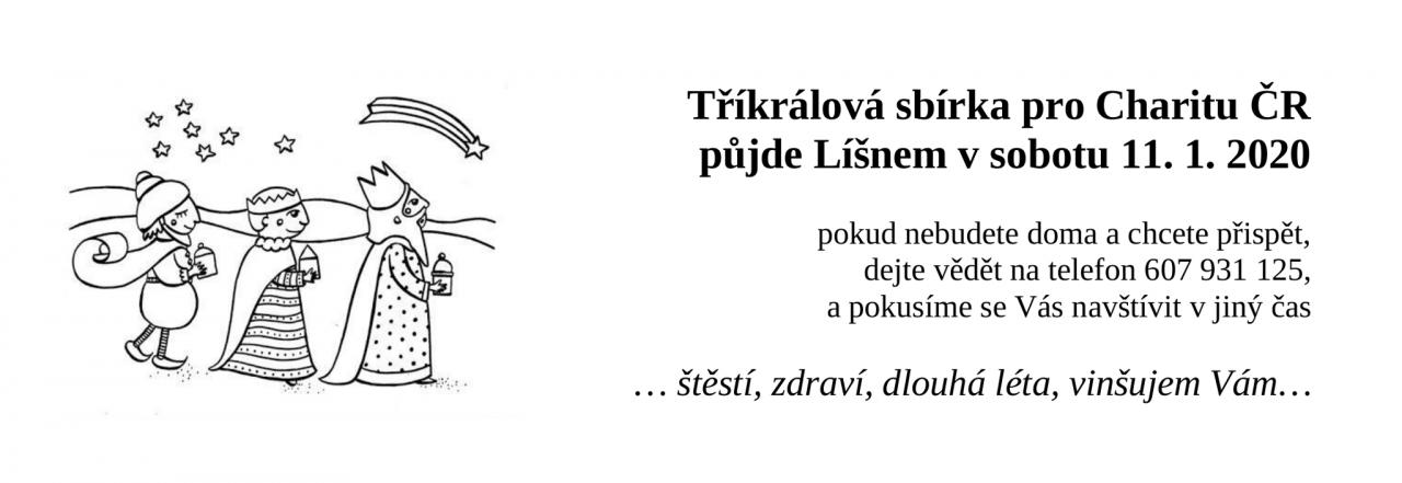 V Líšně proběhne Tříkrálová sbírka v sobotu 11. ledna 2020.