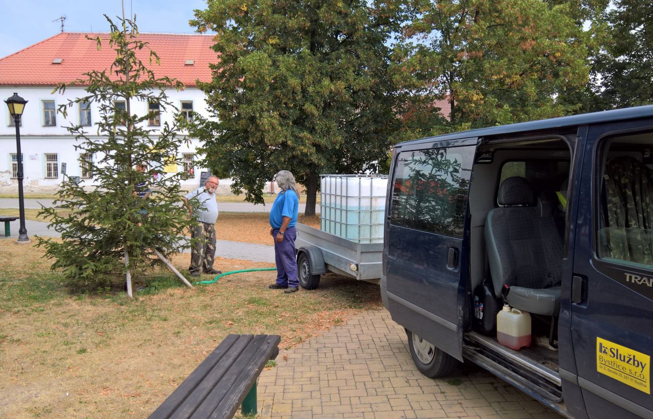 Město Bystřice ani Služby Bystřice s.r.o. k zalévání nepoužívají vodu z veřejného vodovodu, takže neporušují regulační opatření vydané městem dne 1. 8. 2018.